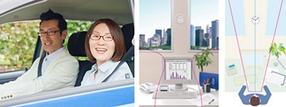最先端技術を応用したメガネレンズで、一人ひとりの度数やフレーム形状、使用目的に合わせて、オーダーメイドで設計するので、ボヤケやユガミが少なく、もっとも自然でクリアな視界を実現します。