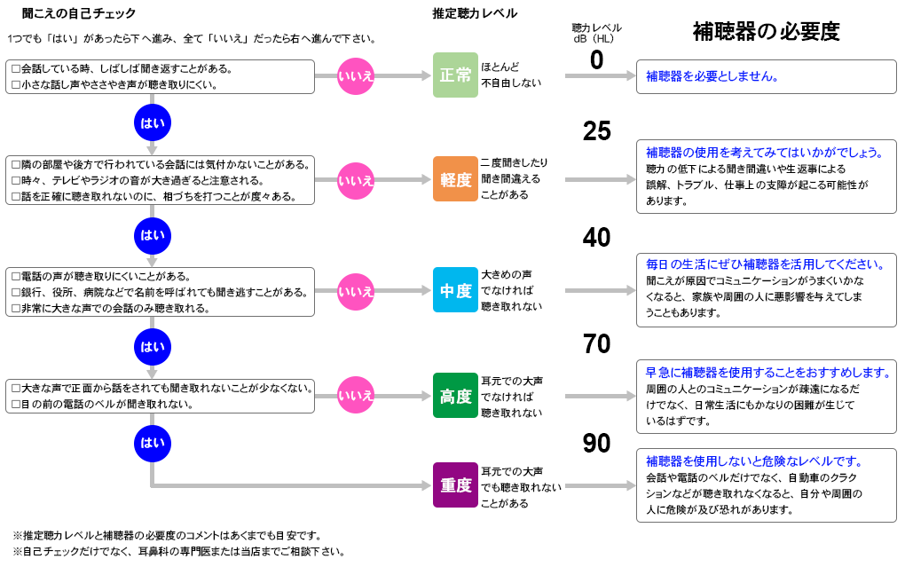 「この頃、会話がちょっと・・・」という方や「そろそろ補聴器を・・・」という方、生活の中での聞こえの状態をチェックしてみませんか。