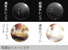 撥水コート加工をすると、水をはじきレンズが汚れにくくなり、雨や雪の日に快適です。